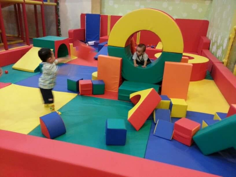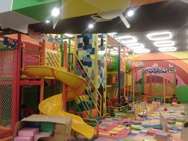 Permainan dalam ruangan dengan berbagai permainan atraktif(mandi bola, tictactoe, monkey bar, sandsak, slider, softplay, trampoline,flying fox,dll)